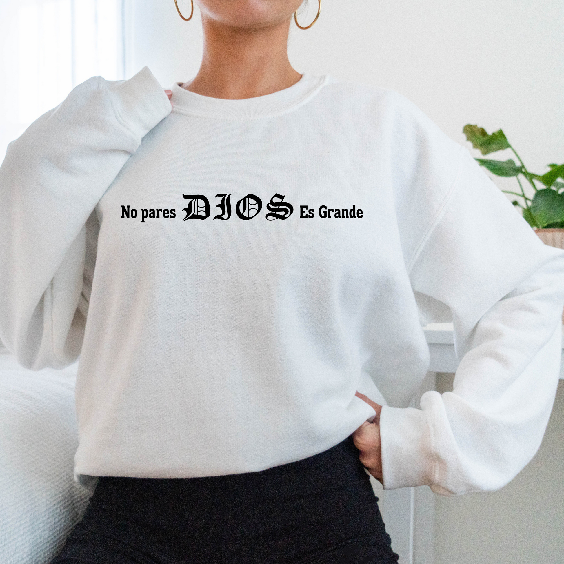 Our Christian apparel is designed to inspire and uplift! Embrace your faith in style with this sweat shirt featuring an inspirational Spanish saying: "No pares Dios es grande," which translates to "Don't stop God is bigger"! This crew neck sweat shirt is the perfect way to express your faith in a bold and beautiful way.